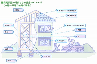 この制度を利用する登録業者の10年保証は保険等で裏付けられているため、万が一、多額な補修費用がかかる保証事故が発生した場合でも、確実に保証を受けられるしくみです。法律で定められた10年保証をカバーする「長期保証」のほか、仕上げの剥離や建具の変形などを対象とする最長2年の「短期保証」もある安心の制度です。